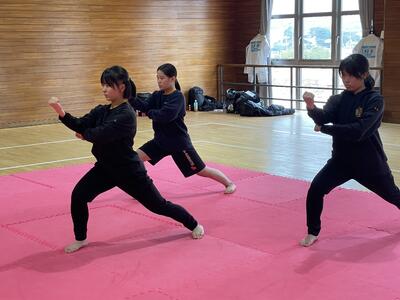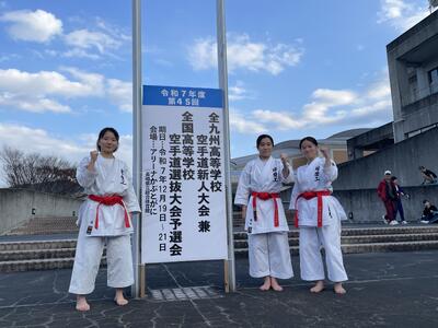 先週の新人戦にて女子団体形3位に入賞した球磨工3人娘
