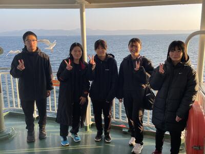 熊本港→島原港をフェリーで渡る空手道部員たち