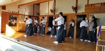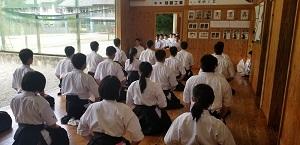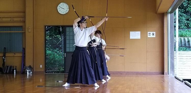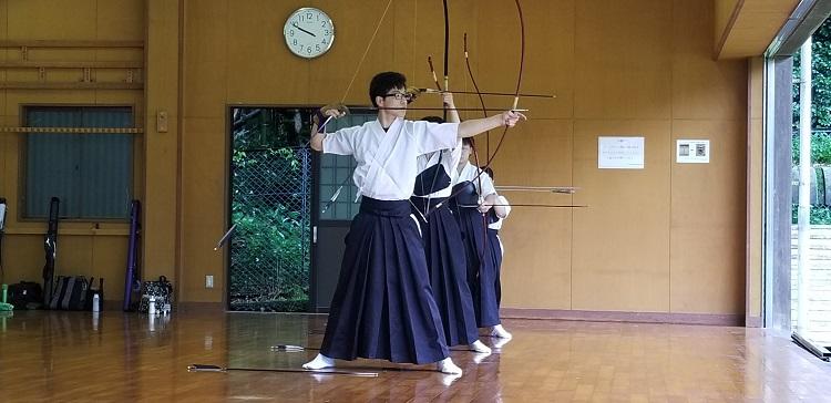 内容は、廣岡主将(2年建築科)による射礼を行なった後、1手(2本)1立(坐射)の後、4矢による立射2立の競射を行なって納会を終わりました。