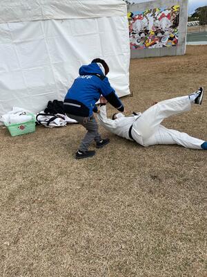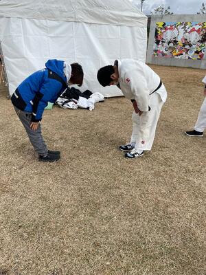 12月17日(日曜日)に熊本県の海の玄関である八代港内にあるくまモンポートにおいて、「International Festival in Kumamon Port2022」【在日外国人と日本人が交流することでお互いを知り、多文化共生社会への理解と意識を高め、在日外国人と我々日本人が相互理解を深め「地域で共に生きていくこと」を考える機会とする国際交流事業】に本校柔道部が参加しました。日本文化の一つである「柔道」を通して、柔道衣の着付け、柔道の礼法、柔道技を教えて投げられるなどの柔道体験を多くの方々に提供させていただきました。このイベントに参加し、日本文化の「柔道」は世界的に認知されていることを知り、柔道への誇りを改めて持つことが出来ました。この機会をいただきまして本当にありがとうございました。