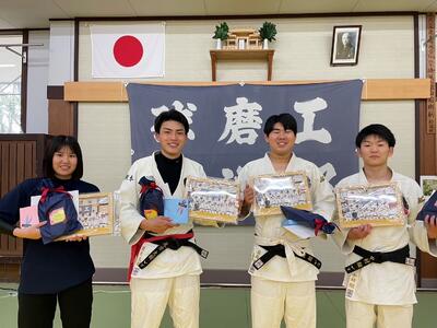 男子個人66kg級の西玄陽選手(2年機械科、人吉一中出身)が準優勝で全九州高等学校柔道競技大会出場権を獲得、男子個人90kg級の北川良唯選手(2年機械科、人吉三中出身)、男子個人100kg級の橋口朋弥選手(3年電気科、あさぎり中出身)、男子個人100kg超級の青木蓮樹選手(2年機械科、人吉二中出身)の3名がベスト8となりました。