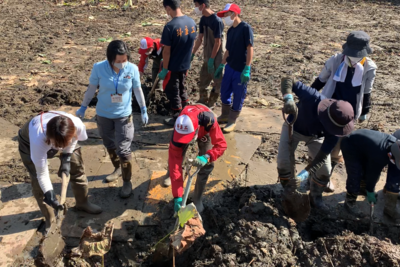 足場がぬかるんでおり、泥に足を埋めながらの作業になりました