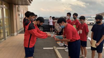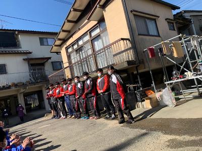 練習後、後援会による式も執り行っていただきました。例年、餅つきをしていますが、水害で臼もなくなり、コロナウイルス感染症拡大予防のため、餅つきは実施しませんでした。