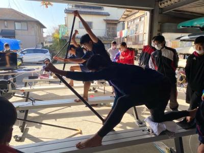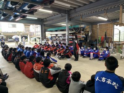 例年、漕ぎ納め会を行っていますが、今年は球磨川の水位が練習できるような状況ではないため、練習納め会として陸上でのトレーニング行いました。水上トレーニングではありませんでしたが、いつも支えてくださっている保護者の方々に普段見せることのない一生懸命練習している姿を見せることができました。いつも以上に緊張感ある中で練習ができ、良い1年の締めくくりになったのではないかと思います