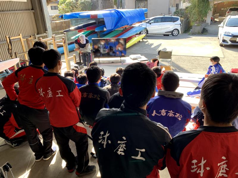 被災し、多くの艇が使用不可になった現状だったカヌー部に、ヤマハ熊本プロダクツ株式会社様からカナディアン艇の寄贈をしていただきました。この艇は2015年に和歌山県で開催された「紀の国わかやま国体」に出場された社員の方が使用されていたものだそうです。国体出場経験のある大事な艇を寄贈していただきました。大事に球磨川で乗っていきたいと思います。