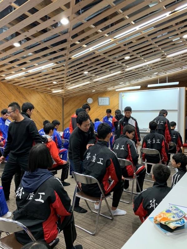 3年生1人1人から話がありました。中でも、印象に残っているのは立岩颯仁(3MB)の言葉です。「10言われたことを10やれとは言わない。」という言葉から始まり、「その中でも自分の身になることはきっとある。素直に受け止めないと、もったいない。」という話をしていました。この言葉からきっとこの3年間納得いかないこと、腑に落ちなかったことたくさんあっても、全て素直に受け止めて、自分なりにかみ砕いて、自分のものにしてきたのだろうと考えさせられました。また、「仲間の存在を大切にすることが大切だ」と皆口々に言っていました。3年生は6人とメンバーが少ない中で、仲間を大切にし、尊重し、協力し、3年間過ごしてきたのだなとほんの数ヶ月しか彼らを見ていない私でも感じることができました。インターハイ、国体と結果を残してきた3年生から言われたこの言葉、1,2年生に響いていて欲しいと強く思う程良い話をしてくれました。この話を素直に受け止め、自分なりにかみ砕いて、自分のものにしてほしいなと思います。