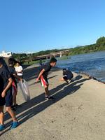 その後、3年生は大会に向けて体を慣らすため、エルゴトレーニングを行い、その間1・2年生で、日頃から使わせていただいている河川敷へ感謝を込めて、清掃を行いました