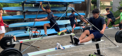 休校が開けて、まだ体力的に追いついていないという状況の中、部活が本格的に再開し始めました。さらには、時期的に天候も悪く、水上での練習が思うようにできず、陸上トレーニングが多くなっています。そのような中、OBの橋本さん(球磨工卒)、秋山さん(人高卒)が来てくださり、指導をしてくださいました。実際に実績を残した身近な先輩からの指導は、新鮮で身が入っているように感じました。