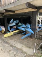 施設の中にあった艇は、艇同士で当たったり、艇とアングルに挟まれて折れていたり、酷い重なり方をしています。