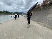 22日(水)に災害後初めて変わり果てた球磨川に、艇を下ろし、23日に2時間程、代替大会に向けて、少しの練習をしました。まだ球磨川の水も濁っていました。艇の数も足りていないので、乗り継ぎながらの練習になりました。