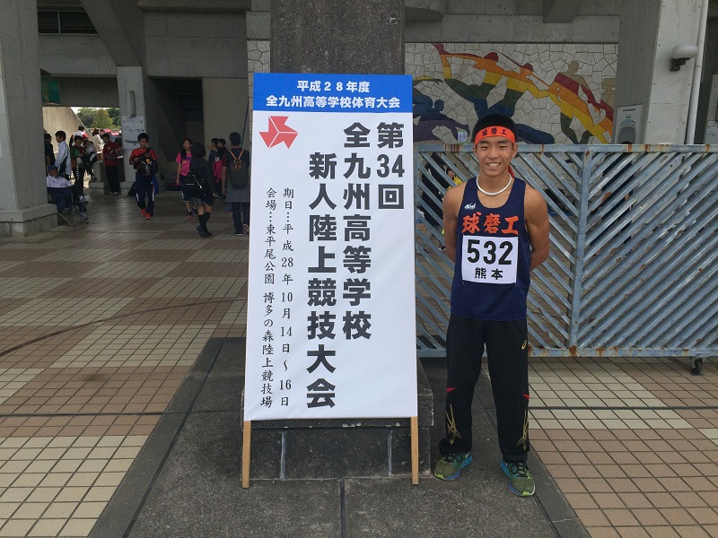 4月22・23日の2日間、えがお健康スタジアムにおいて平成29年度熊本県陸上競技選手権大会兼国体1次予選会が行われ、本校から参加標準記録をクリアしている生徒が参加しました。今大会は国体選考も兼ねており、大学生を中心にレベルの高い試合内容となりました。その中で、男子4×400mRで5位に入賞し、九州選手権への出場を決めました。優勝した大学生チームを除けば4位ということで、来月の県高校総体では表彰台も狙えるのではないかと手応えを感じました。