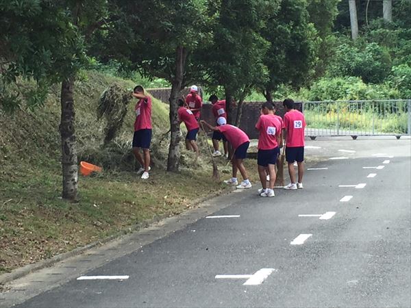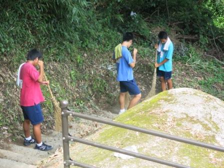 猛暑の中でしたが生徒会執行部が互いに協力し、雑草抜き、落ち葉や枯れ枝拾い、ゴミ拾いを