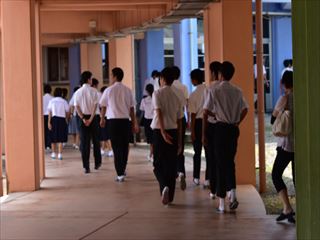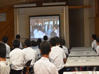 学校にいる生徒たちは、体育館にて入場行進の映像を観ました。