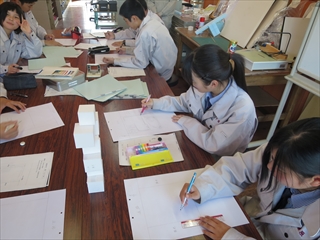 建築科2年生の伝統建築コースでは現在、二方転び椅子の製作に取り組んでいます。1年時に道具の扱い方や継手・仕口などの基本的な木工作業を学んでおり、2年時からそれらを活用して製作していきます。今は原寸図を描いている段階です。良いものができるよう頑張ります!