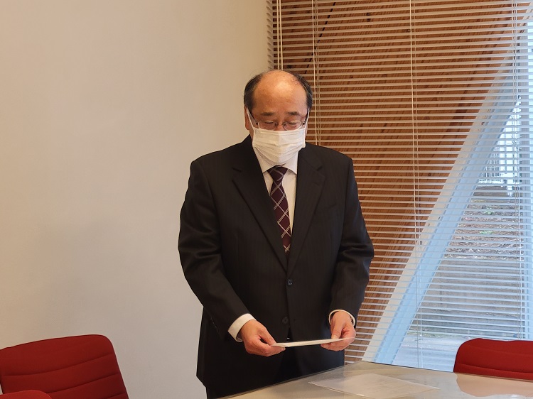 挨拶をされる消防試験研究センター熊本支部長 古賀健市 様