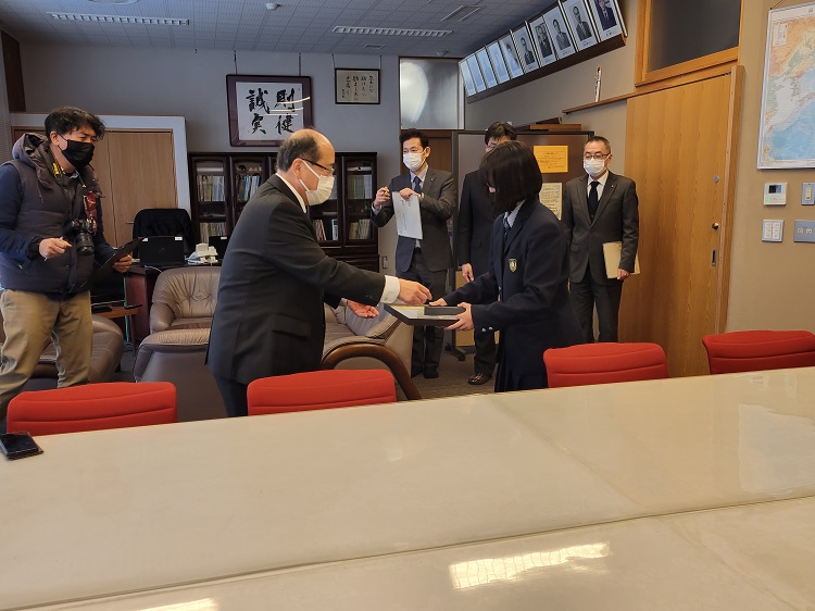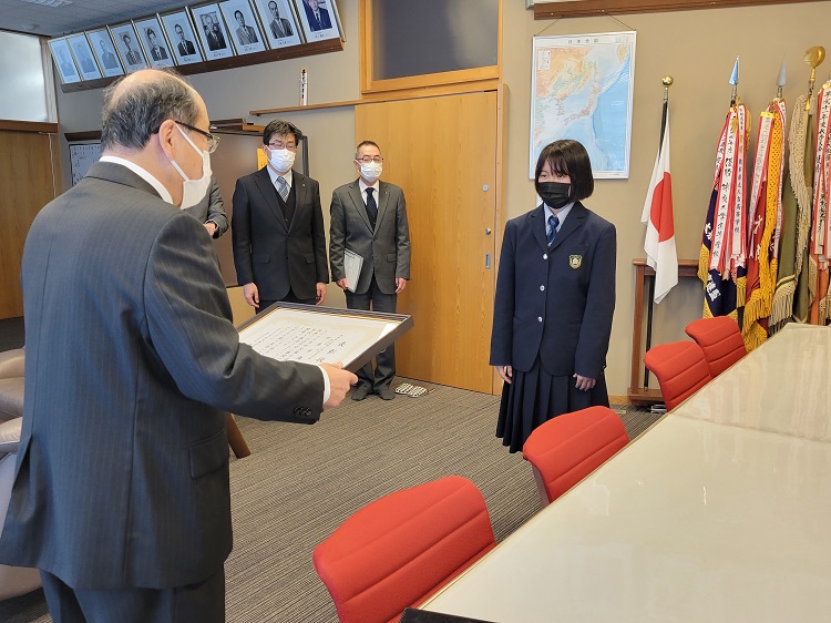 2月6日(月)13時より、『消防設備士甲種第4類免状取扱者』の授与式が行われました。見事、現役高校生で難関に合格したのは、電気科3年 田浦実優さん(人吉二中出身)です。この、消防設備士甲種第4類は、自動火災報知設備、ガス漏れ火災警報設備、消防機関へ通報する火災報知設備、共同住宅用自動火災報知設備、住戸用自動火災報知、特定小規模設備用自動火災報知設備、複合型居住設備用自動火災報知設備の工事や整備の仕事ができます。