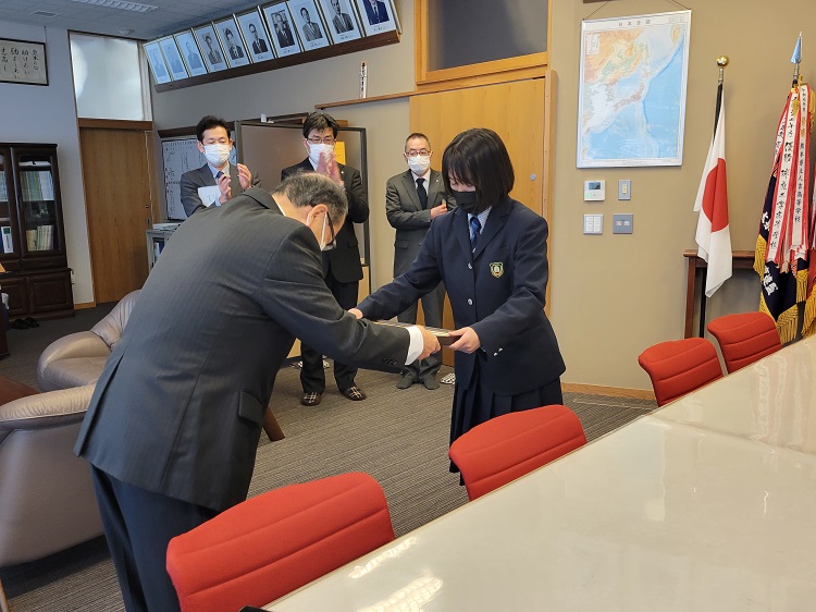 12月15日に行った校内長距離走大会の上位入賞者へ表彰を行いました。