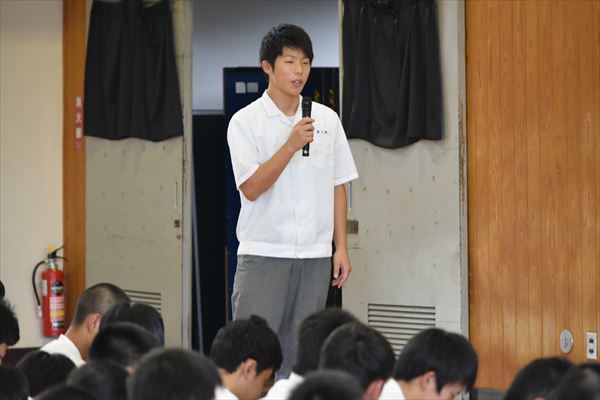 学校長及び生徒会副会長の星子君より激励の言葉がありました。その後、各部より大会日程の紹介や目標などを述べました。
