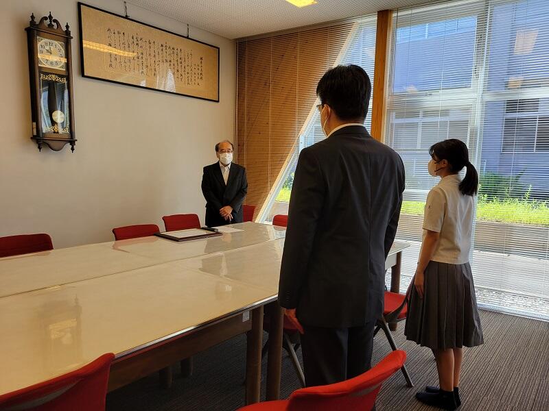 本校は11月1日(火)に『創立60周年記念式典』を実施しますが、「何かに役立ててください」と伸和コントロールズ(株)様より金一封をいただきました。