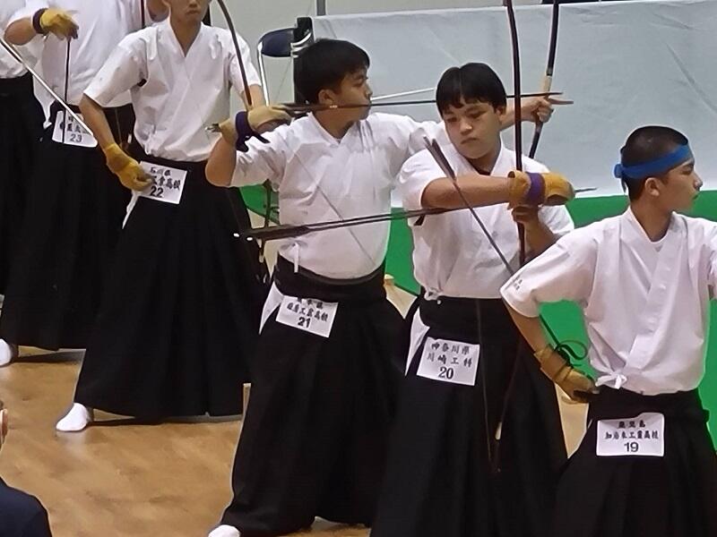 本校からは、熊本県大会で個人優勝した建築科3年松浦伊吹君(球磨中出身)が男子個人競技に出場しました。予選は、全国から勝ち抜いた96名で競いました。松浦君は予選を4本全て中てて準決勝へとコマを進めました。準決勝では、46名で競いました。松浦君は2本目を外しましたが、その後は落ち着いて3・4本目を中てて決勝へと勝ち抜きました。決勝は、27人で競いました。