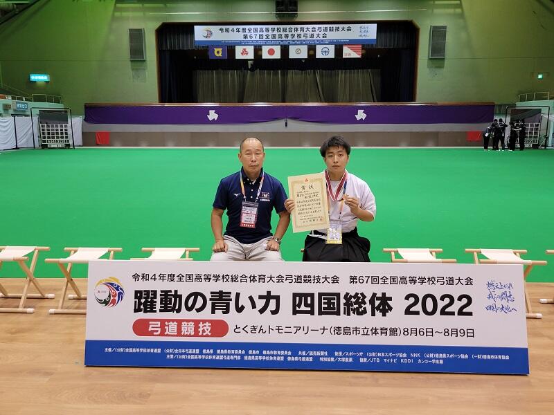 8月6日(土)~9日(火)の4日間で、令和4年度全国高等学校総合体育大会、第67回全国高等学校弓道大会が、徳島県徳島市とくぎんトモニアリーナで開催されました。