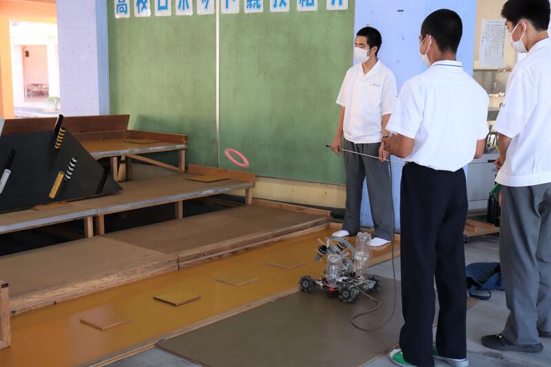 自作のロボットによる輪投げ競技への挑戦。「高校生ロボット競技大会」に出場したりしていますよ。