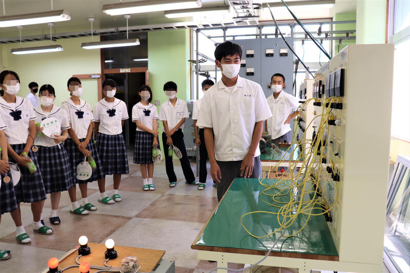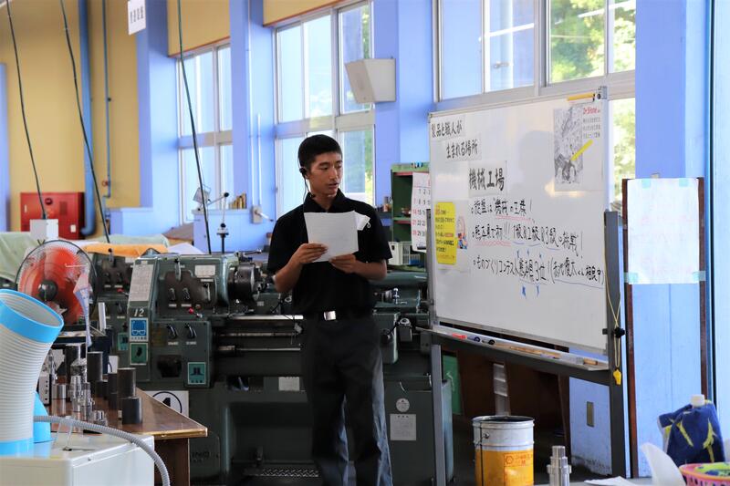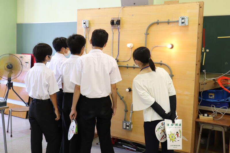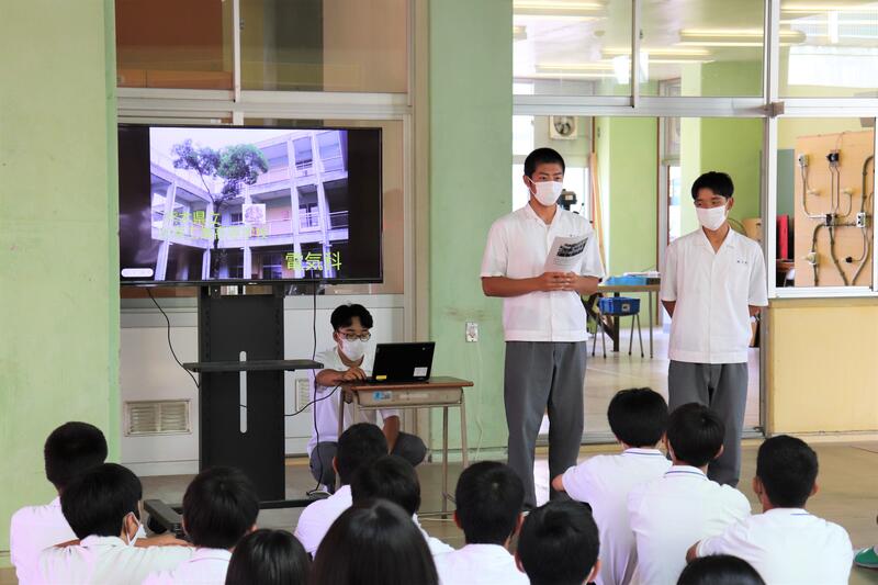 生徒会執行部のメンバーが各会場に案内したり、各会場では球磨工3年生が説明をしたりするなどして、高校生が主体となって学校の紹介をしてくれました。