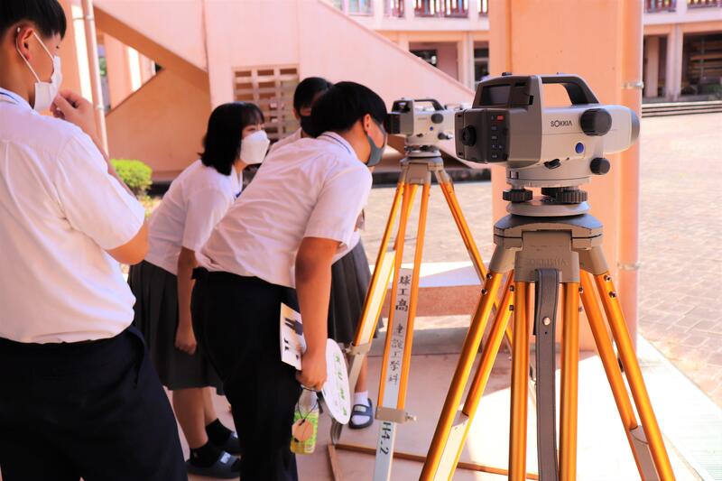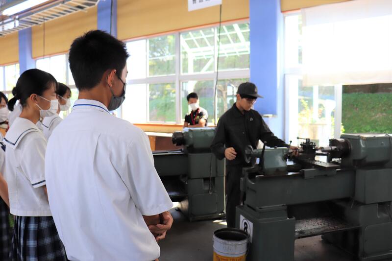 4つの班に分かれ、機械科・電気科・建築科・建設工学科の実習を見学、体験しました。