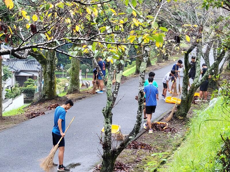 9月1日(木)いよいよ二学期のスタートです。昨夜降った雨により落ち葉が散乱していましたが、朝練の時間に、駅伝部が通学路の掃除をしてくれました。