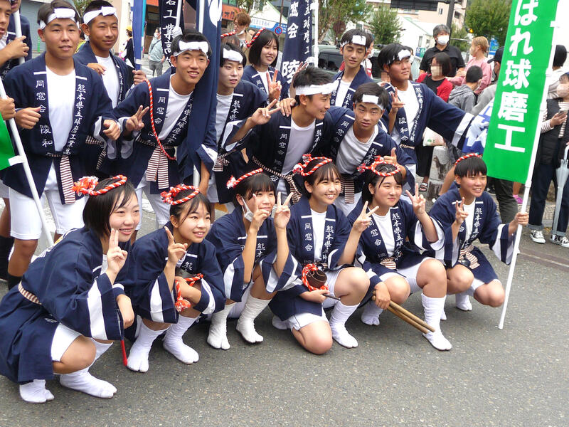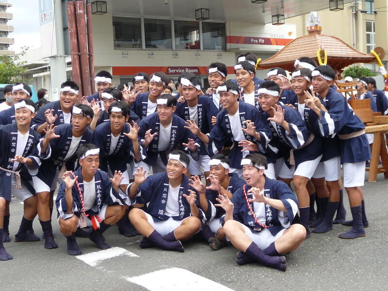 神幸行列は3年ぶりに行われ、神輿を担いだ本校3年生の有志が市の中心部を大きなかけ声と共に練り歩きました。