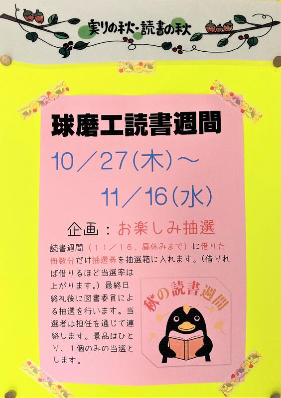 球磨工図書館独自の取り組み、「球磨工読書週間」が始まっています。