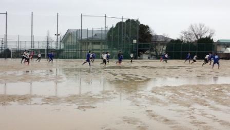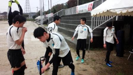 雨が降り冷たい風も吹く中、大津高校のグラウンドで30分×4本の練習試合を行いました。A戦の60分間、圧倒的格上チームを相手に難しいピッチコンディションの中、選手たちはよく戦いました。システムや選手の配置も完全に雨天時仕様で臨み、ある程度割り切った戦い方を徹底しましたが、球際の局面やゴール前の攻防でもよくファイトし、敗れはしたものの手ごたえを感じることができた選手も多かったようです。だからこそ、たった1回のミスやたった1回のコミュニケーション不足による失点をなくしていかなければ。手ごたえと同時に結果を残せるチームになるために。挑戦は続きます。