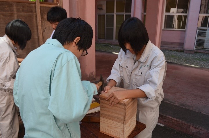 《建築科》球磨支援学校木工班・球磨工業高校建築科木育班交流会