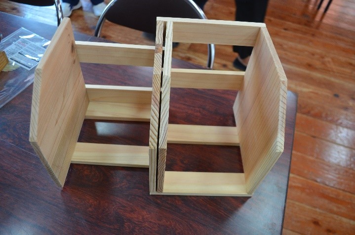 事前に支援学校の生徒のみなさんにデザインしてもらった木工作品をもとに本棚やペン立て、木のおもちゃなどを二人一組で制作していきました。のこぎりや玄翁の他にも鉋なども使用しながら作りました☆失敗もありましたが、それぞれに個性あふれる作品が出来上がりました(*^_^*)