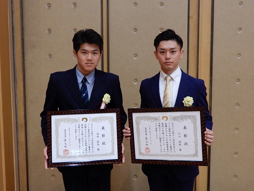 本日、11月21日(水)9時30分からホテル熊本テルサ(テルサホール)にて、熊本県知事表彰を伝統建築専攻科1年川口諒祐、建築科3年内田祐汰が受けました。