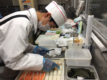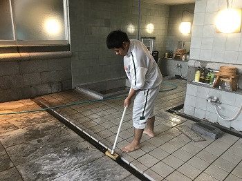 「翠嵐楼」でインターンシップをしている川口君(人吉二中出身)
