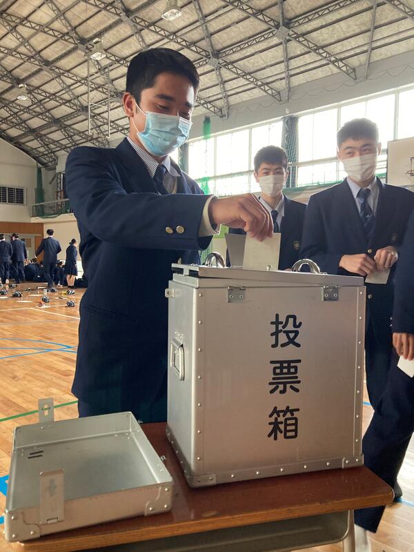実際の投票箱に投票をしている生徒(上)
