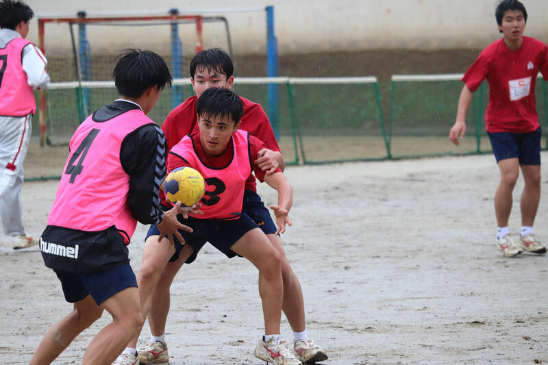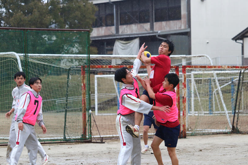 ハンドボールは雨の中の決勝戦。