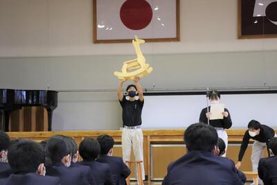 表彰式では「写真コンクール」「『推し高』コンテスト」「成績優秀者」「校内検定優秀者」「皆勤賞」「ジュニアマイスター」の表彰を行いました。