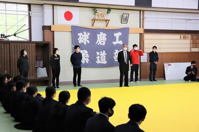 コンテストへの応募は、昨年の球磨工フェスタにおける取り組みでしたが、最優秀賞を受賞した動画部門「多様性のある球磨工」と、特別賞を受賞した漫画部門「電気科の冒険」の2作品は、審査員からも絶賛されたレベルであったと、プレゼンターの松村審議員からもお褒めの言葉をいただきました。