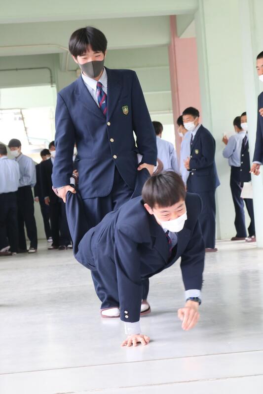 機械科。先輩たちが自己紹介&一発芸。