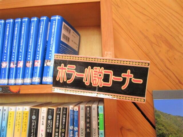 ホラー好きにはたまらないコーナー。図書館に来て棚を探してみましょう。
