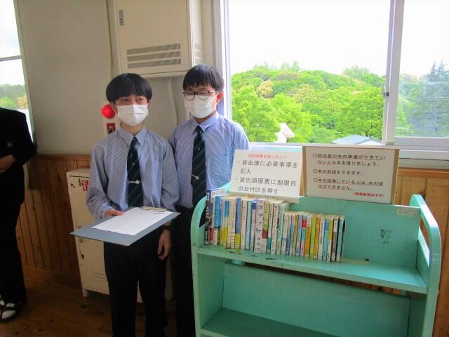 とのことで、朝読書が始まる前に、図書委員による「出前図書」を行いました。
