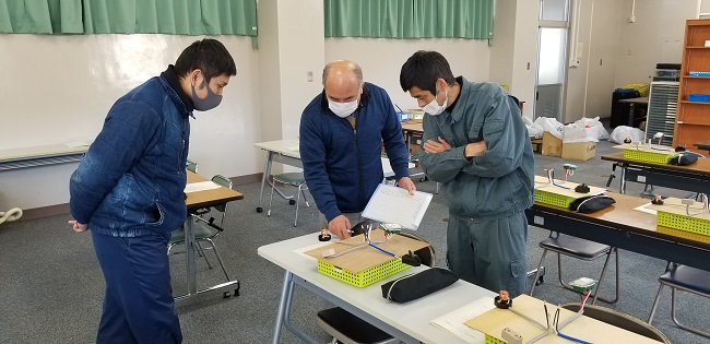 期末考査3日目、12月3日(木)の3限目は、電気科1年生の第2種電気工事士の実技試験が実施されました。期末考査中に試験を行うのは本校の電気科では初の試みです。10月4日(日)に第2種電気工事士の筆記試験を電気科1年27名全員が受験し、24名が合格しました。本番は、12月6日(日)で試験時間は40分間ですが、教室での実施は難しかったので場所を視聴覚室に生徒は移動し、今回は期末考査時間のため50分間で実施しましたが、後片付けや整理整頓までを含めての50分間で行いました。