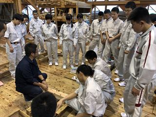 建築科では、伝統建築コースの説明と鉋削り、建築コースの説明と液状化現象、3DCAD演習を行いました。高校3年生が主体で、分かりやすく中学生に説明してくれました。