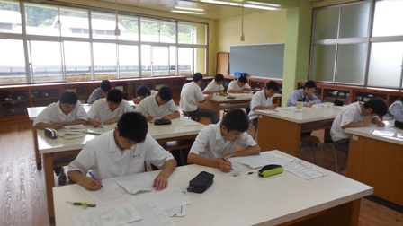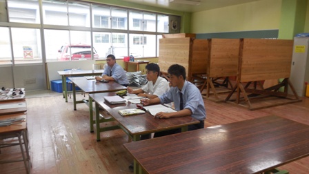 普段は実習台で作業をしますが、今回は自分が使っている机を教室から移動させ、狭いスペースでの作業に生徒は戸惑いながら、作業を行っていました。