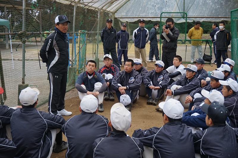 元西武ライオンズの蓬莱昭彦さんにお越しいただき、選手たちに熱い指導をしていただきました。