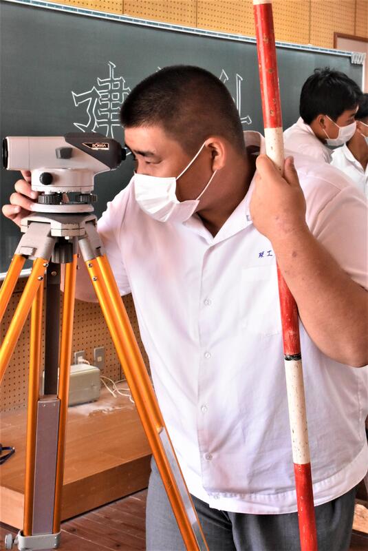 測量の様子。高校3年生にもなると技術が身について、様になりますね!