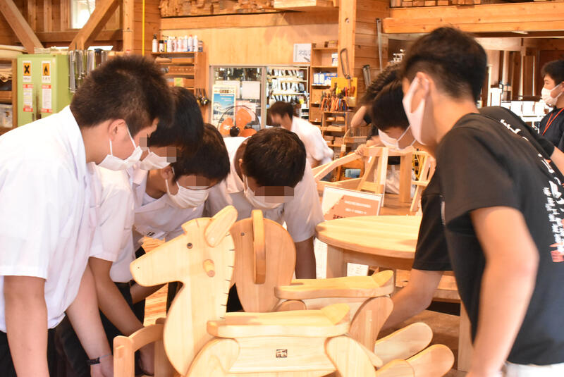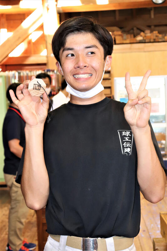 鉋がけを体験してくれた中学生には木製キーホルダーをプレゼントしました。