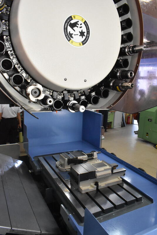 機械科に導入された「マシニングセンタ」という機械。かなり大きくて、中学生の皆さんは驚いたのではないでしょうか。